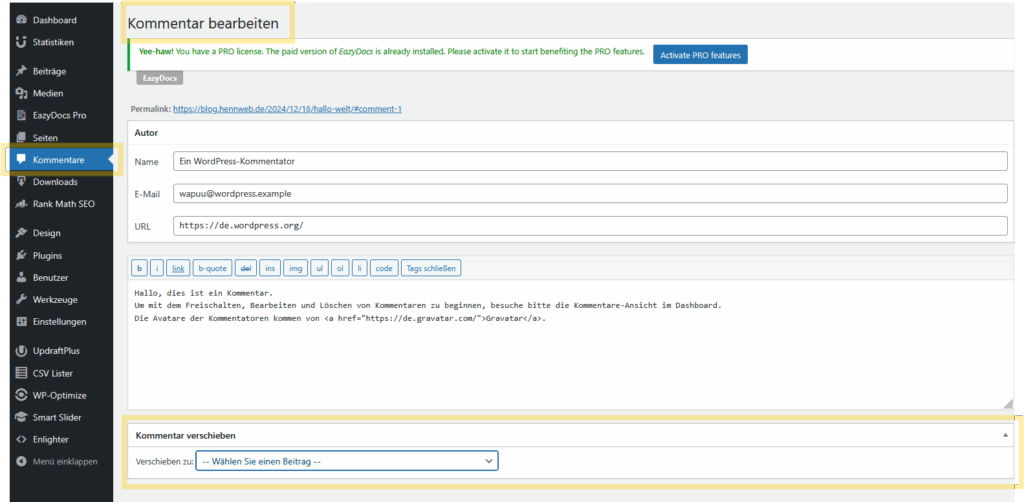Bietet in Wordpress die Möglichkeit Kommentare einfach zu einem anderen Beitrag zu verschieben.