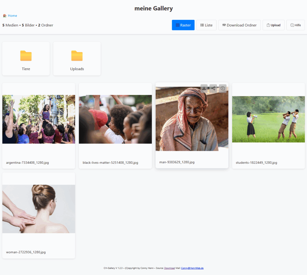 Wenn alles geklappt hat, erscheint die Galerie-Oberfläche.