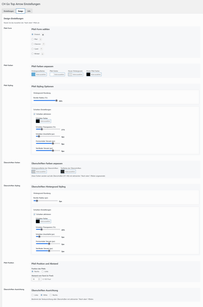 CH Go Top Arrow ist ein vielseitiges WordPress-Plugin, das intelligente „Nach oben“-Pfeile zu Ihren Überschriften hinzufügt. Mit umfangreichen Anpassungsmöglichkeiten ermöglicht es Ihnen, die Benutzerfreundlichkeit Ihrer Website zu verbessern und gleichzeitig ein professionelles Design zu gewährleisten.